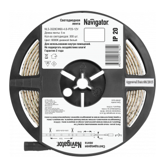 Лента светодиодная 71 762 NLS-3528CW60-4.8-IP20-12V R5 (уп.5м) Navigator 4670004717622